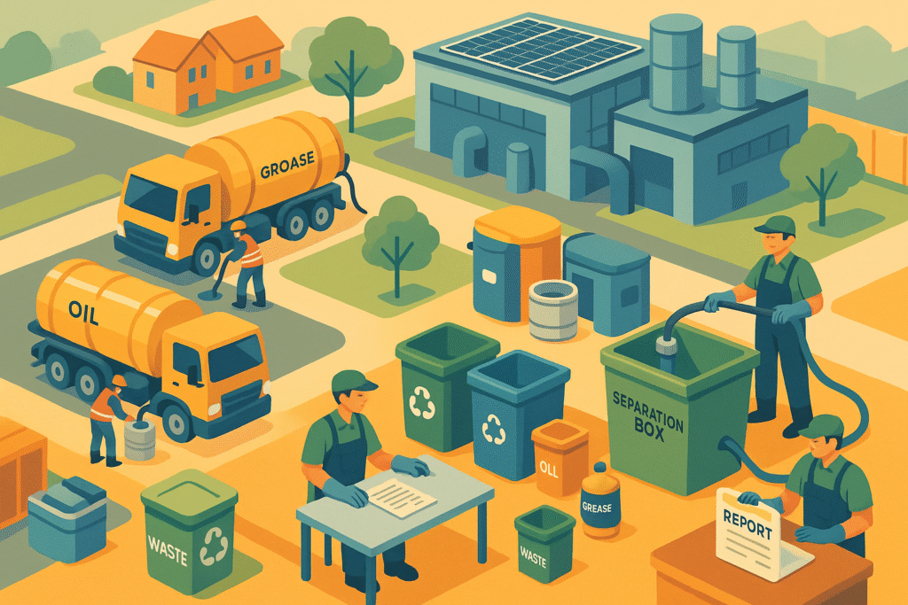 Operação completa para resíduos de caixa de gordura e caixa separadora (água/óleo) com comprovante de destinação quando necessário.